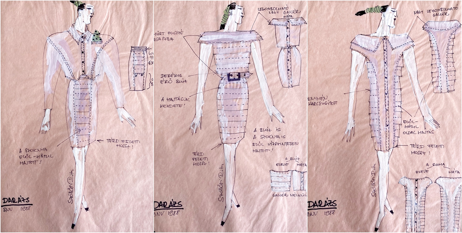 1989 OKISZ OKLEVÉLLEL DÍJAZOTT DARÁZS NŐI RUHAKOLLEKCIÓ, Vezető szabász technikus: Hodován József