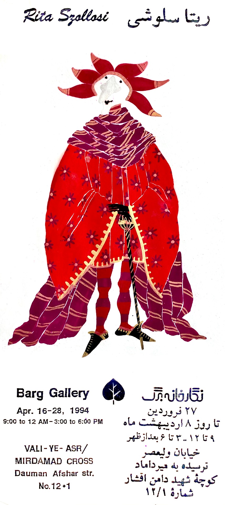 1991 családommal Teheránban, Irán fővárosában éltünk. Iránban aktív alkotómunkát végeztem. Textil bábokat, illusztrációkat, ékszereket készítettem. Teheránban több kiállításon mutatkozhattam be, mint európai, női kortárs iparművész. Gholamhossein Karbaschi, teheráni főpolgármester felkérésére munkáimat bemutathattam Irán egyik jelentős, új, modern fővárosi kiállítótermében, a BARG Galériában. A kiállításról az iráni CNN televízió is tudósított, Shirine Lashgari riporternő közreműködésével. Helyi újságok és médiumok is beszámoltak az eseményről. Többek között az iráni állami televízió az IRIB TV1, a Zane Rooz /Nők Lapja/ a címoldalon és 3 oldalas cikkben tudósított a kiállításomról. Alkotásaimat bemutattam még a Diplomata Hölgyek Klubjában és a Magyar Nagykövetség épületében.